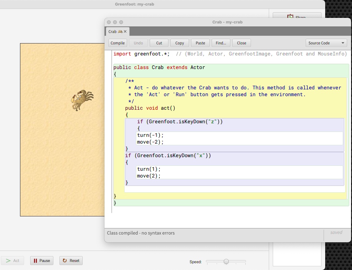 The screenshot I have posted is my slight fiddle with one of Greenfoot's introductory lessons, and the