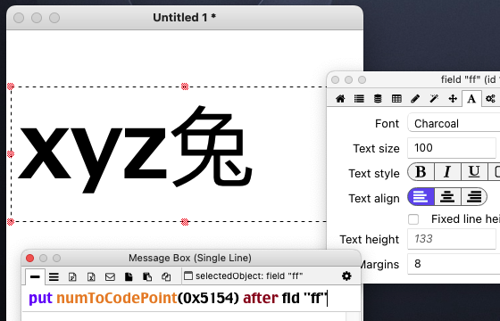 It had also occurred to me that adding a Chinese char font file to Standalone App Settings > Copy Files might reduce the risk associated with Chinese char not reliably displaying on different devices. One of the things that I don't currently understand is how the LC IDE is displaying Chinese char on the Windows 11 laptop that I use for development. Is there a Chinese char set built into all Windows 11 laptops, or is there a Chinese char set built into LC 9.6.9, or something else? The Property Inspector claims that the font of my Chinese char is Roboto. Roboto is the font that I use for the English version of my app, and I include the Roboto TFF in the standalones Copy Files. I've also tested changing font size in the IDE, and the Chinese char resize nicely.
