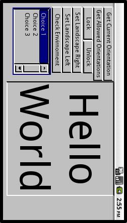 end openstackUsing the Android 2.2 Simulator with WQVGA432 resolution, I have a glimmer of luck, but no where near a solution. After pressing the my Set Landscape button once, and repeatively doing a Ctl-F12, to toggle landscape mode in the Simulator, it eventually shows up in correct landscape mode. How to translate this into code, remains a mystery.